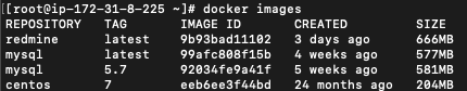 3. docker images -> docker hub에서 다운 받은 image를 확인 할 수 있다.