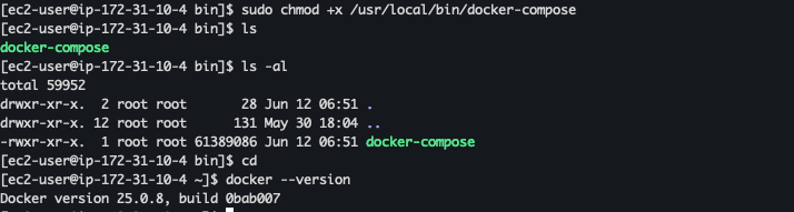sudo usermod -aG docker ec2-user // ec2-user가 sudo 없이 docker deamon에 접근 가능하게 해주는 명령어