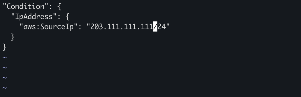 예시로, 다음 정책은 퍼블릭 접근을 막고 특정 IP에서만 접근을 허용하는 조건